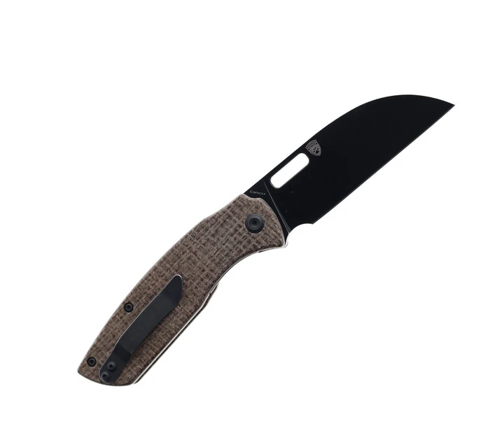 QSP Grebe T Button Lock Folding Knife Black Micarta Handle 14C28N Tanto Plain Black Blade QS148-A2
