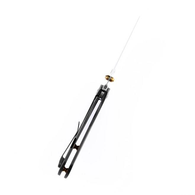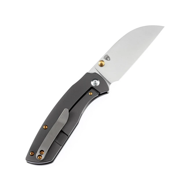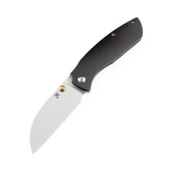 QSP Grebe T Button Lock Folding Knife Black Micarta Handle 14C28N Tanto Plain Black Blade QS148-A2