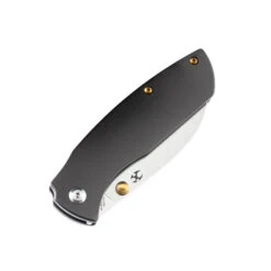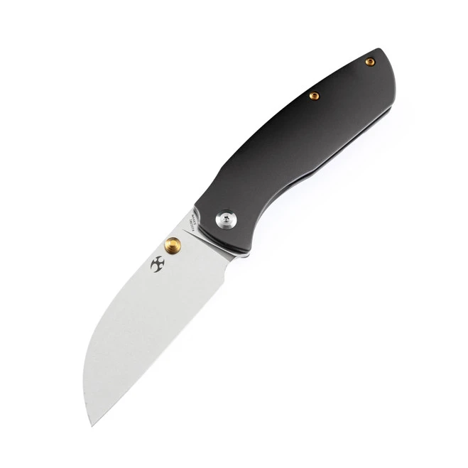 Kansept Convict Folding Knife Brown Micarta Handle 154CM Plain Edge Black Stonewash Finish T1023A1
