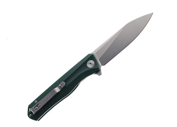 Tekto F2 Bravo Folding Knife Green G10 Handle W/Black Accents D2 Drop Point Plain Black Blade